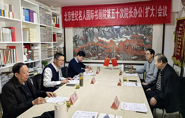2026年3月16日,北京世纪名人国际书画院第50次院长办公(扩大)会议在院本部领地大厦召开。受第九届全国政协副秘书长、名人书画院院长张道诚的委托,中国书协第四、五、六届理事,名人书画院副院长朱守道主持会议。北京市政协委员、中国社区发展协会副会长、中国书协第六届青少年委员会委员、名人书画院副院长兼秘书长汪碧刚,名人书画院副秘书长赵勇,名人书画院中国画创作委员会秘书长陈培伦,名人书画院中国画创作委员会常委孙德才,名人书画院办公室主任刘欧祥参加了会议。